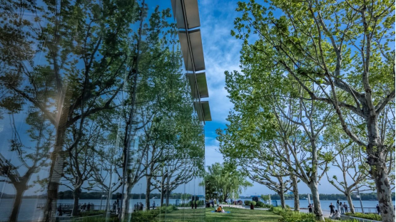 初夏時節,園區的開放式景區、口袋公園處處綠樹成蔭,濱水駁岸區域水清岸綠、鳥類恣意棲息,引得市民游客頻頻駐足。一幅幅人與自然和諧共生的生態畫卷在園區鋪展。