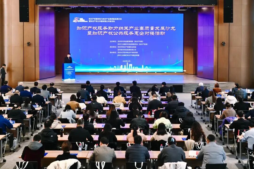 12月15日,知識產權服務助力納米產業高質量發展沙龍暨知識產權公共服務惠企對接活動在園區納米城舉行。本次活動由蘇州工業園區科技創新委員會與蘇州市市場監督管理局(知識產權局)聯合主辦,來自政府機構、科研院所、知識產權服務機構及納米產業企業共120余人參加了本次活動。