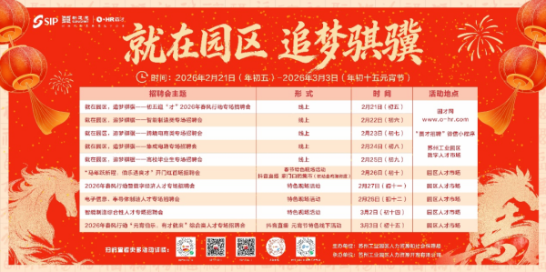 此次“就在園區(qū),追夢騏驥”新春招聘系列活動包含了5場線上招聘會、5場線下招聘會以及2場直播帶崗云聘會,從大年初五至正月十五,確保春節(jié)招聘不打烊、服務不停歇。