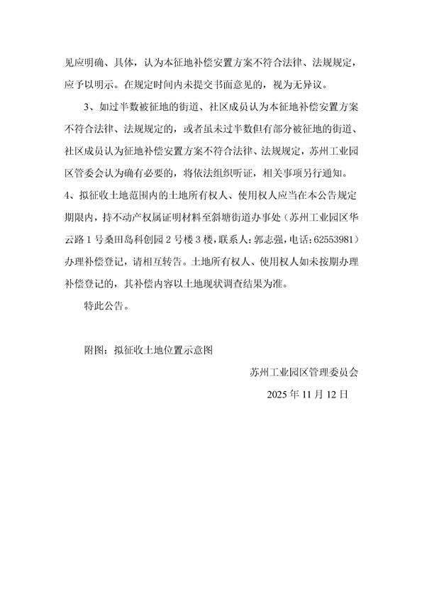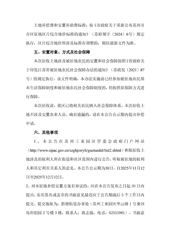 蘇州工業(yè)園區(qū)管理委員會(huì)征地補(bǔ)償安置方案公告(蘇工園征補(bǔ)安置〔2025〕007號(hào))