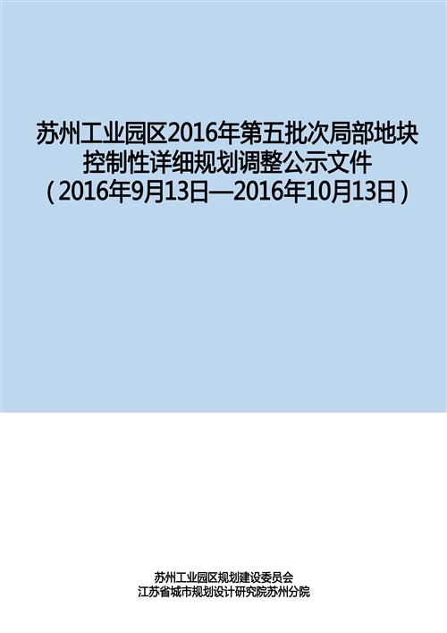 蘇州工業(yè)園區(qū)2016年第五批次局部地塊控制性詳細(xì)規(guī)劃調(diào)整公示