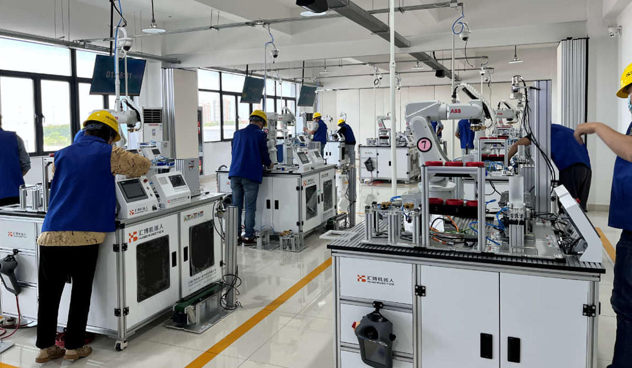 匯博ロボットグループは教育アップグレードを継続的に支援しており、390萬元の資金を投入し、203.16萬元相當(dāng)の産業(yè)用ロボット実習(xí)設(shè)備を寄贈し、蘇州百年職業(yè)學(xué)院と「工業(yè)インターネット産業(yè)學(xué)院」を共同建設(shè)し、実習(xí)生産基地を精心に整備した。