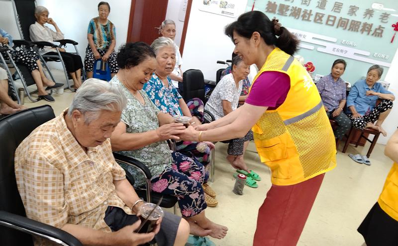 8月2日,唯亭街道綜合為老服務中心的會員收到微信通知:活動大廳周末也對外開放了。除了延長開放時間,多個社區養老服務設施還為老人提供綠豆湯、酸梅湯和涼茶等解暑飲品;東湖大郡日間照料中心在大廳顯眼處擺放藿香正氣水、降溫頭貼和茶包供有需求的老人自取;熙岸社區日間照料中心、鳳凰城社區日間照料中心等養老服務設施舉行“手繪團扇”等活動,給炎炎夏日增添了一絲趣味;四季新馨湖園日間照料中心別出心裁地組織老人制作并品嘗涼面,幫助老人刺激食欲、增加胃口......室外艷陽高照蟬鳴悠長,室內歡聲笑語不絕于耳,工作人員細心周到地為老人們提供各種服務,讓老人們體會到具象的關愛與尊重。