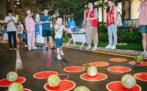 為了促進社區(qū)青年人的互動交流,“月老辦事處”交友盲盒攤位設置了創(chuàng)意的社交任務,如“交換一本書”或“分享一個小秘密”等,鼓勵居民通過抽取盲盒來結(jié)識新朋友,幫助大家在輕松愉快的氛圍中建立新的友誼。“瓜分快樂”區(qū)域圍滿了居民,氣氛熱烈。集齊4個印章的居民通過套圈游戲贏取新鮮的西瓜,一陣陣歡呼和驚嘆,不僅為活動增添了許多歡樂和驚喜,還讓大家享受到了甜美的夏日水果。“自治共治志愿同行”攤位,設置了流動黨員報道點以及便民咨詢服務,紅管志愿者幫助居民快速了解活動信息和社區(qū)服務。最后,在本次活動的“99公益”捐獻環(huán)節(jié)中,居民們紛紛熱情參與,累計捐款人數(shù)230余人次,每一筆善款都將用于支持社會公益項目為社區(qū)和需要幫助的人送去更多溫暖和希望。