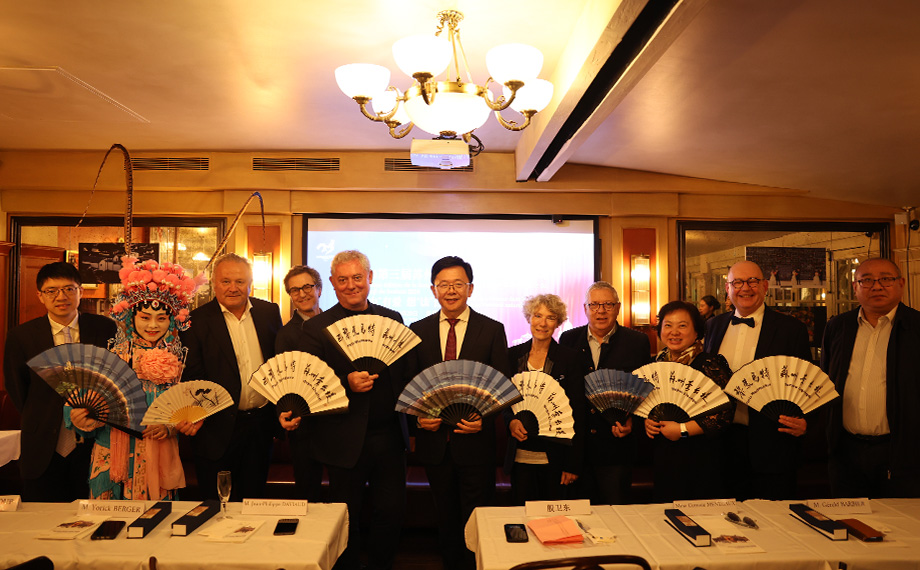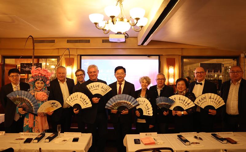 當?shù)貢r間10月11日晚,在中法雙方的共同見證下,2024第三屆蘇州金雞湖中法文化藝術周在巴黎蒙馬特街區(qū)拉開帷幕。巴黎十八區(qū)政府議員M.Jean Philippe DAVIAUD、巴黎旅游會展局局長Mme.Corinne Menegaux、法中合作交流協(xié)會會長M.Yorick BERGER、蒙馬特商會會長M.Frédéric LOUP、法國泰勒藝術家基金會主席M.Jean Fran?ois LARRIEU等領導和嘉賓出席了活動。來自巴黎十八區(qū)政府、巴黎會展旅游局和巴黎高校、博物館、銀行、投資基金、文旅企業(yè)的一百多位嘉賓共聚一堂,共話交流與合作。活動由蘇州工業(yè)園區(qū)文體旅游局和巴黎旅游會展局共同主辦,新建元集團圓融發(fā)展公司、蘇州工業(yè)園區(qū)公共文化中心、蘇州工業(yè)園區(qū)文化產(chǎn)業(yè)招商中心、蒙馬特商會和法中合作交流協(xié)會共同承辦。