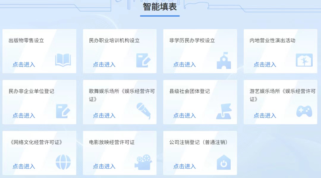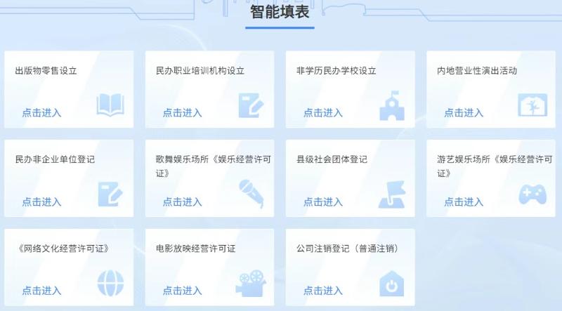 一次填寫,自動成表。在經過幾輪問答之后,平臺可根據采集到的必要信息,生成多張格式標準、填寫規范的申請材料,省去原本復雜繁瑣的表格填寫步驟,實現信息“一次輸入、N次復用”,極大節約申請人的辦事時間。目前出版物零售設立、民辦非企業單位登記、內地營業性演出活動等11個業務已實現智能填表。