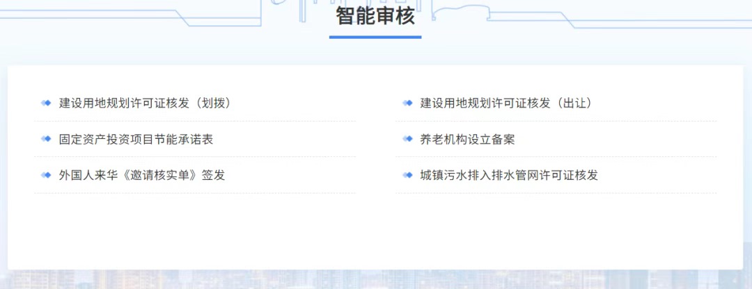 以“電子核驗”替代“紙質流轉”!智能審批模塊當前集成建設用地規劃許可證核發(劃撥)、建設用地規劃許可證核發(出讓)、固定資產投資項目節能承諾表、養老機構設立備案、外國人來華《邀請核實單》簽發、城鎮污水排入排水管網許可證核發6項業務。申報人無需前往現場辦理,在家即可上傳申請資料,實時查看審批結果。對于審批人員來說,智能填表既提高了工作效率,又提升了審批的科學性、準確性。