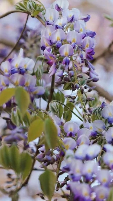 暮春午后,藤架篩下細碎光斑,紫藤花如瀑布般傾瀉而下,紫色的花串隨風搖曳,游人在浮動的香霧中穿行,充滿了夢幻與詩意,是春日里不可錯過的浪漫景致。
