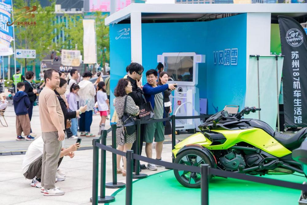 AI繪龍舟,科技龍舟開(kāi)啟體育經(jīng)濟(jì)新航線。現(xiàn)場(chǎng)設(shè)置“科技龍舟體驗(yàn)展區(qū)”,由“體育+科技”“汽車+科技”“智慧+龍舟”“龍舟+零碳”四個(gè)板塊組成,不僅有小鵬匯天旅航者X2雙人版智能電動(dòng)飛行汽車在賽事現(xiàn)場(chǎng)進(jìn)行蘇州首秀(靜態(tài)展示),還可以進(jìn)行單車發(fā)電挑戰(zhàn)、腦機(jī)意念黑科技、虛擬VR賽龍舟和滑雪、AI下棋機(jī)器人博弈等科技運(yùn)動(dòng)打卡項(xiàng)目。同時(shí)設(shè)置零碳計(jì)劃展區(qū),包括物歸“緣”主舊物盲盒交換、綠色回收站等活動(dòng),開(kāi)啟碳中和龍舟2.0版本。今年還以“AI龍舟”為主題,運(yùn)用AI技術(shù)圍繞賽事展開(kāi)創(chuàng)作,每一幅作品都是AI對(duì)龍舟文化的獨(dú)特解讀,充滿了創(chuàng)意與想象,獲選作品在賽事現(xiàn)場(chǎng)公開(kāi)展出。