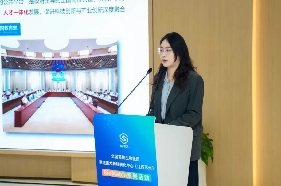 現場,蘇州生物醫藥分中心重點介紹了建設進展、創新機制與資源優勢,深度解讀高校科技成果轉移轉化服務體系,詳細闡述了為項目轉化落地提供的全流程賦能支持,全面彰顯其在破解成果轉化堵點難點以及推動科技成果轉移轉化過程中專業、高效、強勁的綜合服務實力。