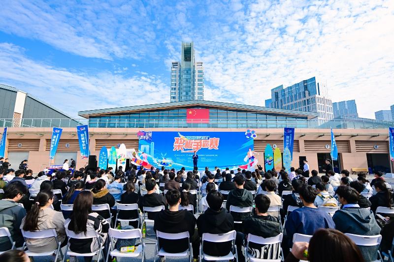 現(xiàn)場,隨著發(fā)令笛聲響起,選手們俯身揮槳,板身如箭般劃破水面,在秋日陽光下劃出一道道優(yōu)美的弧線。岸邊加油聲、吶喊聲此起彼伏,與水聲交織成青春交響樂章。