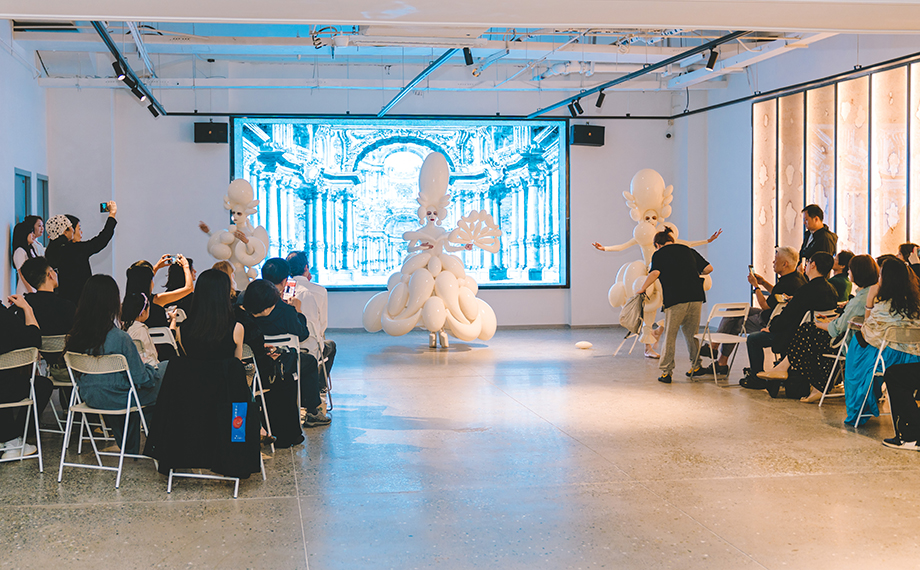 活動(dòng)現(xiàn)場(chǎng),藝術(shù)家薩沙帶來(lái)開(kāi)幕表演《萬(wàn)物歌唱》,通過(guò)裝置的膨脹、收縮與身體的起伏、舒展,模擬出“萬(wàn)物生長(zhǎng)、發(fā)聲”的意象。俄方代表PARI藝術(shù)聯(lián)盟聯(lián)合創(chuàng)始人葉蓮娜·科列索娃、藝術(shù)史學(xué)者達(dá)麗婭·切爾帕琴科、獨(dú)立策展人米阿、有南文化創(chuàng)始人李慷等從文化背景、創(chuàng)作理念等多角度闡釋了“材料”在當(dāng)代藝術(shù)中的角色演變。