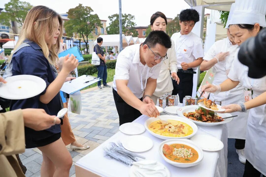 除了廣受市民游客青睞的“蟹味美學”展示菜區域,河對岸的“澄心至味”品鑒菜區域更是一片熱鬧非凡的景象。