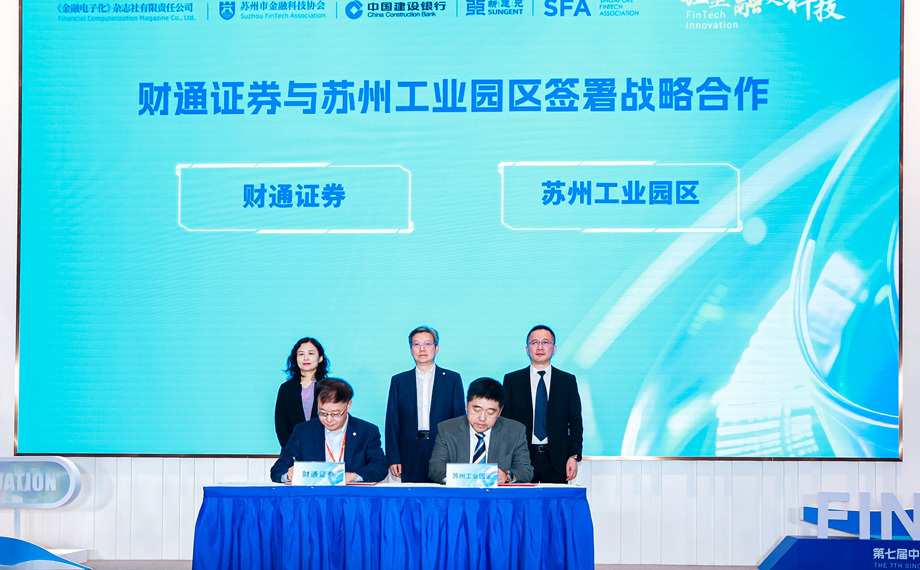 本屆大會延續“兩會合一”模式,集展覽、會議、賽事、招商及配套活動于一體,設開幕式及16場專題論壇,聚焦AI在金融風控、智能投顧、精準營銷等領域的深度融合,呈現從理念到實戰的全方位探索。開幕式上,蘇州工業園區管委會與財通證券簽署戰略合作協議,圍繞企業上市、跨境金融、直接投資等十大領域展開合作,共同構建覆蓋企業全生命周期的綜合金融服務體系。