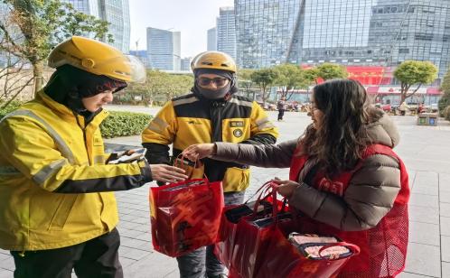 在豐富新就業群體業余生活的同時,社區也不忘關心他們的日常生活。歲末新春之際,時代廣場北社區開展暖心慰問行動,為新就業群體送去冬日溫暖。工作人員將手套、圍巾等暖心禮包送到外賣小哥手中,送上慰問物資的同時叮囑他們一定要注意安全,這些保暖物品切實解決了外賣小哥戶外工作的實際需求。另外,社區組織開展了多場“翰墨賀歲寫春聯”活動,特別邀請了書法老師現場揮毫潑墨,手寫春聯與福字,社區將滿滿的新春祝福贈給每一位外賣小哥。一紙春聯、一份物資,承載著社區的真切關懷,讓奔波在城市街巷的小哥們感受到濃濃暖意與節日氛圍。