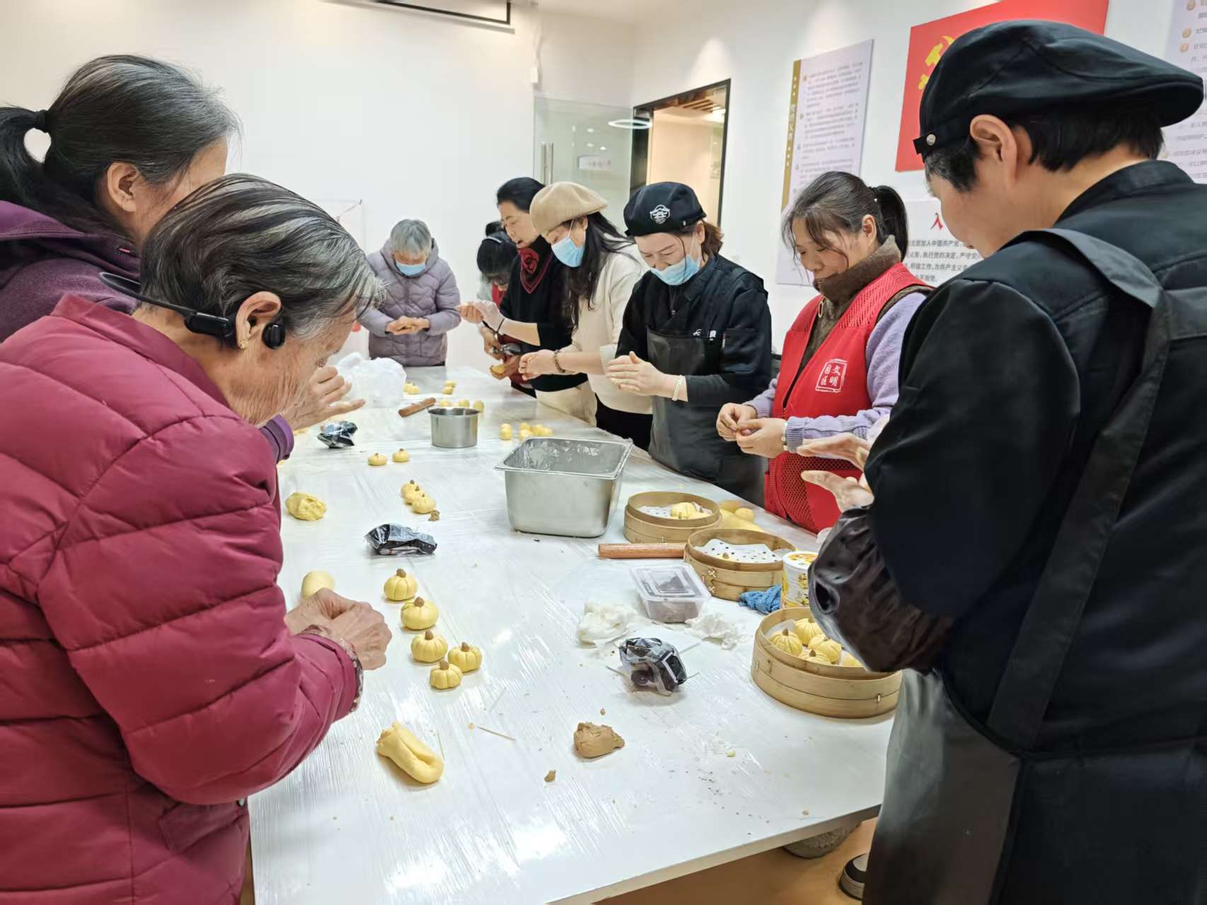 為增加轄區居民的文化生活,進一步增進鄰里情感交流,文薈苑社區開展“以食暖冬,以味連心”美食制作活動,品南瓜之香,享動手之樂。活動伊始,長桌便化身成為溫馨的“社區廚房”。金燦燦的南瓜泥、雪白的糯米粉、香甜的豆沙餡料一應俱全。在美食達人的帶領下,大家揉面、分團、捏窩、包餡、收口……步驟看似簡單,卻處處是手藝的考驗。大家互相切磋著“不粘手”的秘訣,分享著家鄉的不同做法,在鍋碗瓢盆的輕聲碰撞與陣陣歡聲笑語中,鄰里情誼如同這手中的面團,愈發緊密而柔韌。