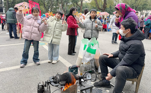 市集特別打造趣味挑戰區,投壺、趣味抓馬等傳統游戲讓居民沉浸式體驗年俗樂趣。投壺攤位前,大人小孩輪番上陣,屏息瞄準、箭矢飛出,每一次中靶都引來陣陣歡呼;“趣味抓馬”游戲更是妙趣橫生,大家在互動中比拼反應力,笑聲此起彼伏。這些充滿儀式感的傳統游戲,不僅讓孩子們感受到年俗的魅力,也讓長輩們重溫了兒時的年味,讓傳統文化在歡聲笑語中代代相傳。