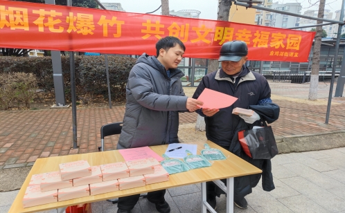便民集市現場,社區同步開展禁燃禁放宣傳活動,工作人員設立專屬宣傳攤位,向過往居民發放宣傳單頁,用通俗易懂的語言講解禁燃禁放政策、煙花爆竹的安全隱患及環境污染危害。為進一步提高居民的知曉率和參與度,社區還精心準備了宣傳小禮品,發放給參與宣傳咨詢、領取單頁的居民,用貼心小舉動傳遞文明過節理念,引導大家自覺遵守禁燃禁放規定,共同守護社區新春期間的平安與祥和。
