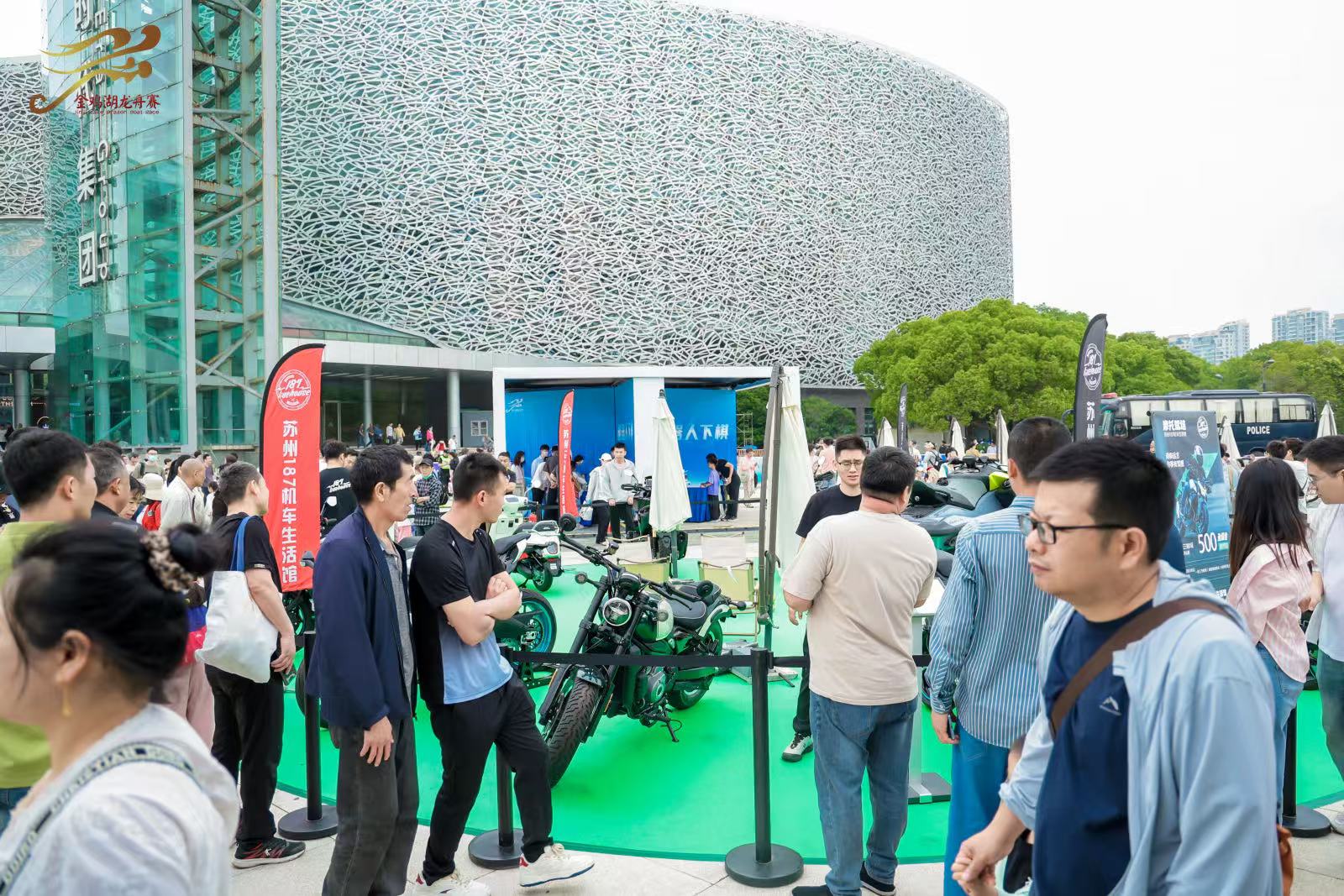 賽場周邊,“華夏同心集”熱鬧開市,“FUN承非遺”金雞湖龍船市60+非遺文化體驗(yàn)、688藝術(shù)潮流公園市集、“龍舟有好市”民族美食市集,帶來200+寶藏?cái)偽坏姆欠搀w驗(yàn),吸引大量市民游客駐足。“科技龍舟體驗(yàn)展區(qū)”帶你穿越未來,智能飛行汽車蘇州首秀,腦機(jī)意念黑科技、VR龍舟競速、AI龍舟畫展,傳統(tǒng)龍舟秒變科技大片現(xiàn)場。