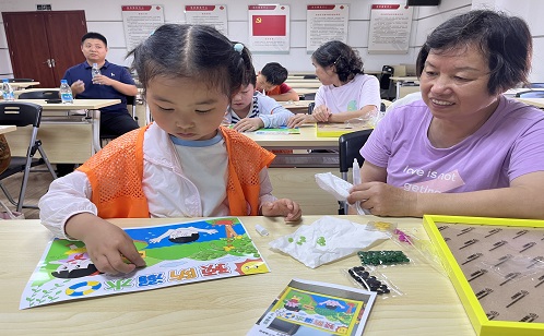 在活動(dòng)室內(nèi),孩子們專注地將五彩斑斕的紐扣粘貼在畫板上,拼貼出救生圈、安全警示牌等防溺水主題圖案。每一粒紐扣的鑲嵌,都是安全知識(shí)在指尖的傳遞與深化。畫作完成后,孩子們紛紛走上小講臺(tái),自信滿滿地分享自己精心準(zhǔn)備的防溺水小故事。稚嫩而認(rèn)真的童聲講述著河湖暗藏的危險(xiǎn)與自救互救的智慧,讓“珍愛(ài)生命,謹(jǐn)防溺水”的警鐘在每一位參與者心中清晰回響。