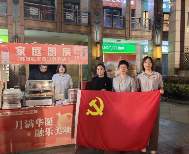9月26日,獨墅湖區域黨建共建暨雙節文藝匯演在月墅公園舉辦。聯合黨支部現場設置酒店“家庭廚房”攤位,呈現特色美食,暢享餐飲優惠。雙方通過資源共享、優勢互補,實現社會效益與經濟效益雙提升。