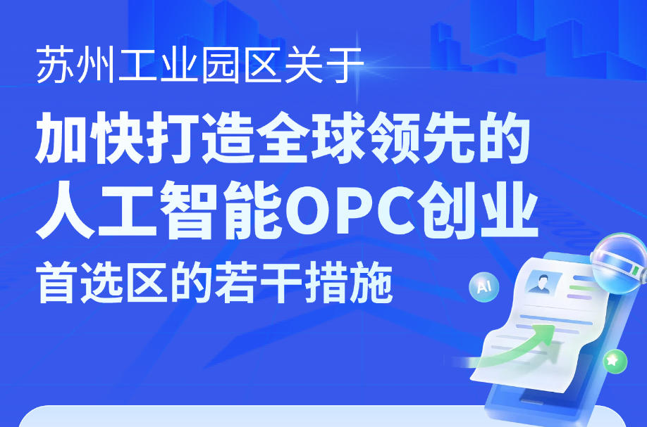 近日,蘇州工業園區發布《關于加快打造全球領先的人工智能OPC創業首選區的若干措施》,以一系列力度空前的“政策禮包”,前瞻布局“個人人工智能公司”(OnePersonCompany,簡稱OPC)這一創新業態。