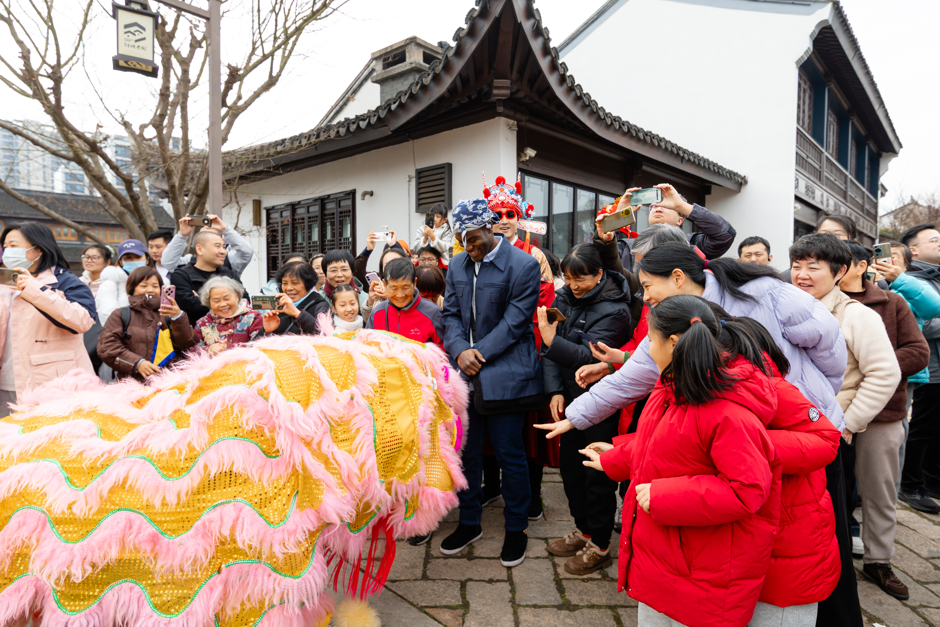 非遺演出更是精彩紛呈。木鳥象劇團(tuán)帶來的非遺燈彩主題巡游將剪紙、年畫、風(fēng)箏等元素幻化于華服與燈彩,交織成流動(dòng)的光影劇場;大年初一,夏國璋龍獅團(tuán)以梅花樁、一柱擎天等高樁表演獻(xiàn)上了精彩的開年好戲。