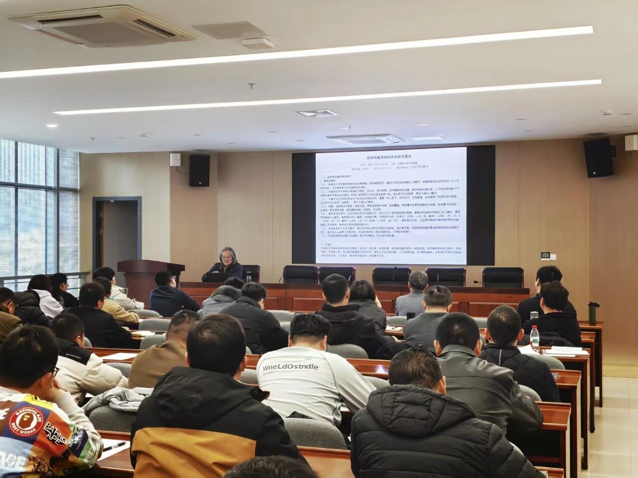 本輪修剪計劃組織養護人員950人次,覆蓋園區217個路段近十萬株喬灌木,重點包括現代大道、金雞湖大道等主干道及居民區周邊。同時,為提升一線作業能力,特邀綠化專家開展現場+課堂雙軌培訓,綠化條線管理工程師及一線養護骨干全員參訓,圍繞喬木修剪、高壓線周邊樹木處理等典型場景強化實操技能,推動基層人員從“會操作”到“懂原理”的能力躍升。