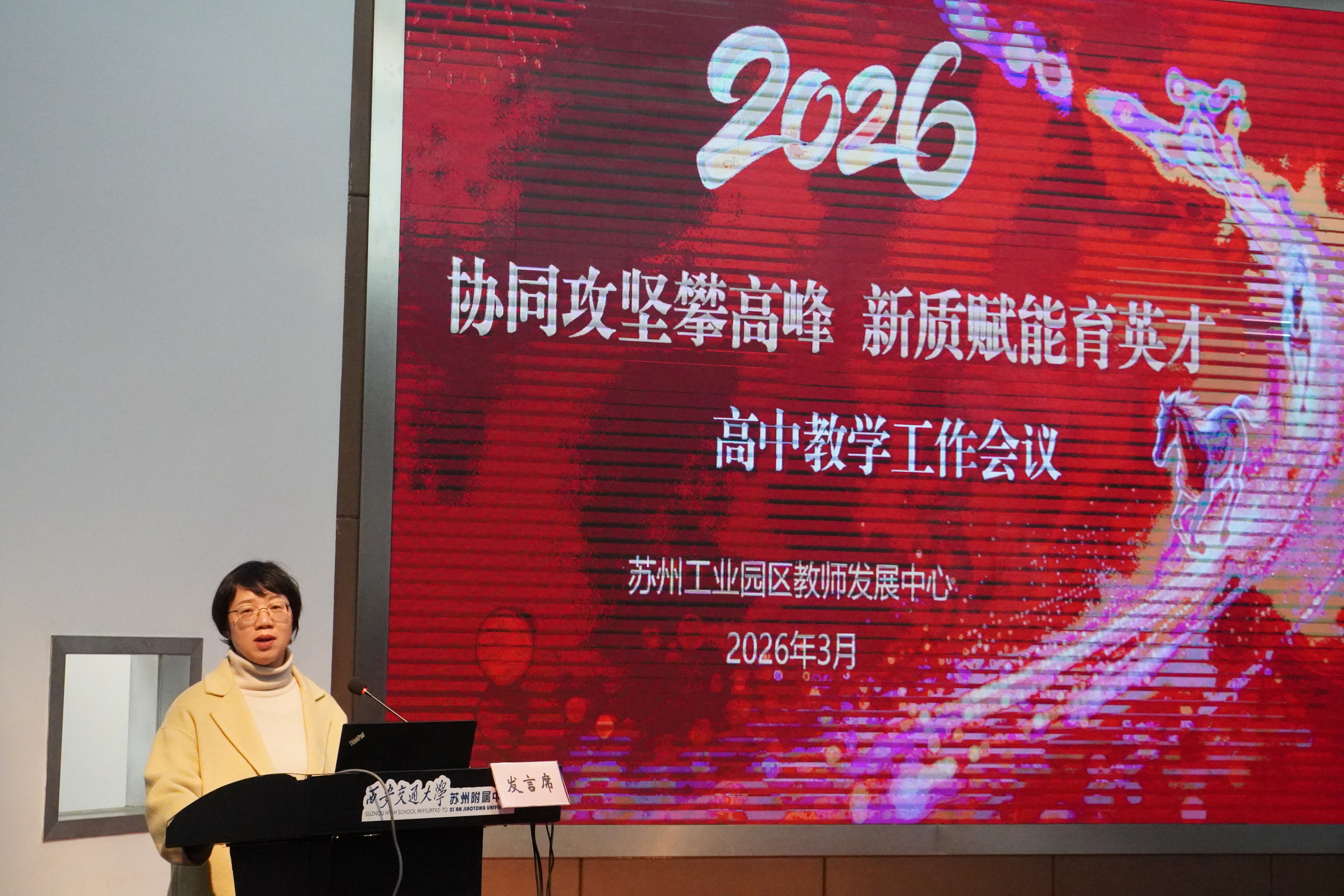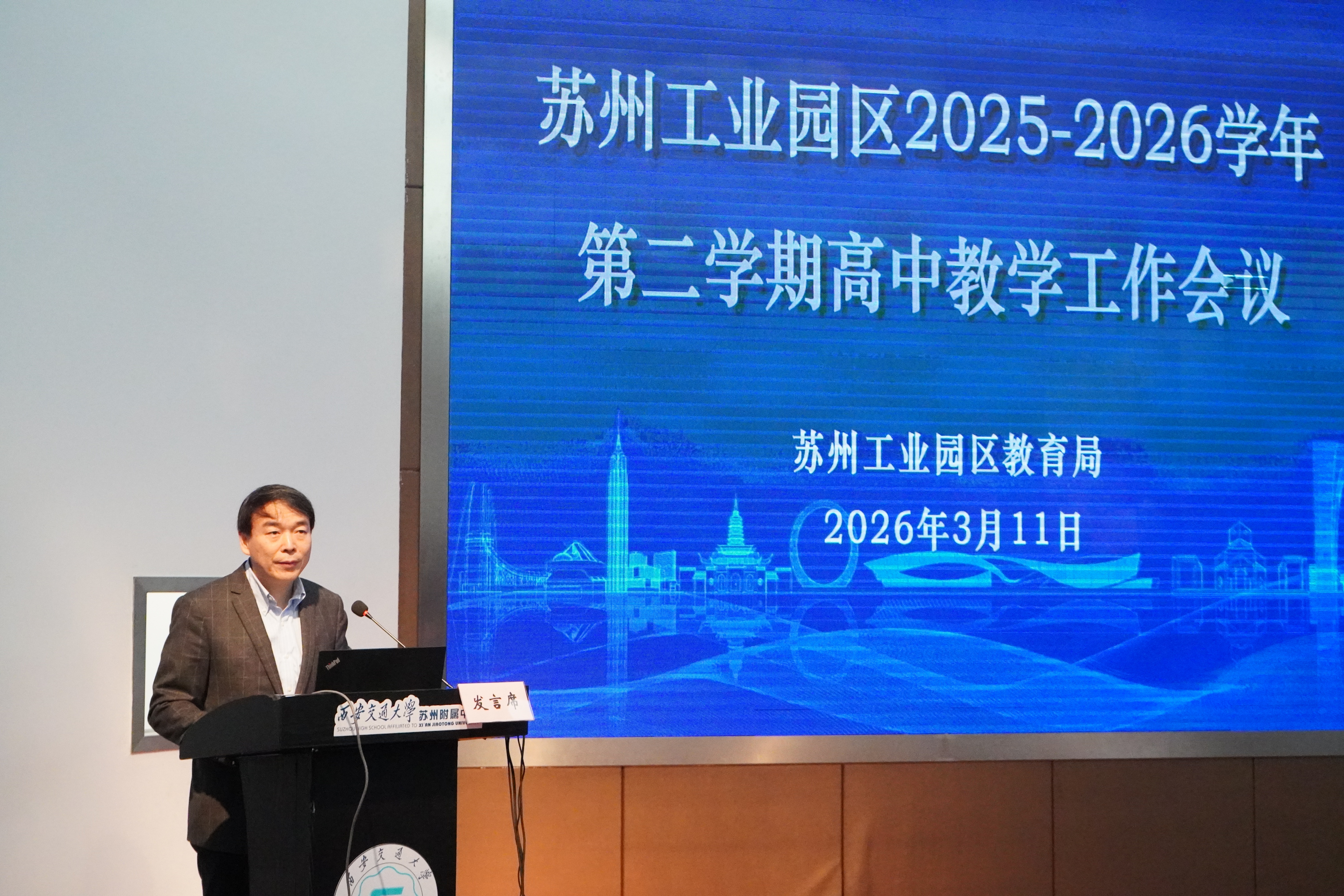 3月11日,2025-2026學年第二學期蘇州工業園區高中教學工作會議在西安交通大學蘇州附屬中學方洲路校區召開。會議圍繞“協同融合、新質育人”年度主題,聚焦課程教學改革與育人模式創新,部署新學期重點工作,致力于推動區域高中教育向著更高質量、更優生態邁進。會議由園區教育局基礎教育處處長楊原明主持。